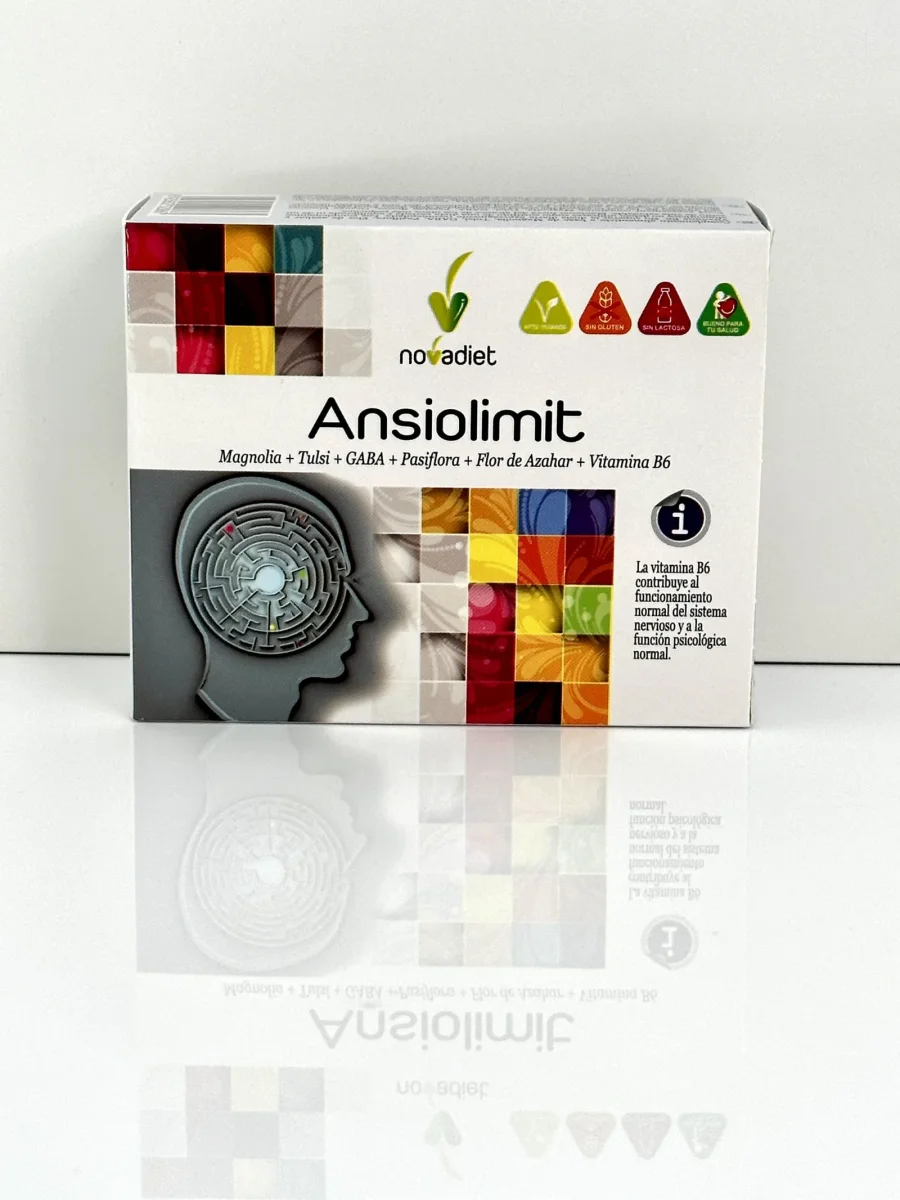 Ansiolimit de Nova Diet es un complemento alimenticio que contribuye al funcionamiento normal del sistema nervioso y la función psicológica normal.
