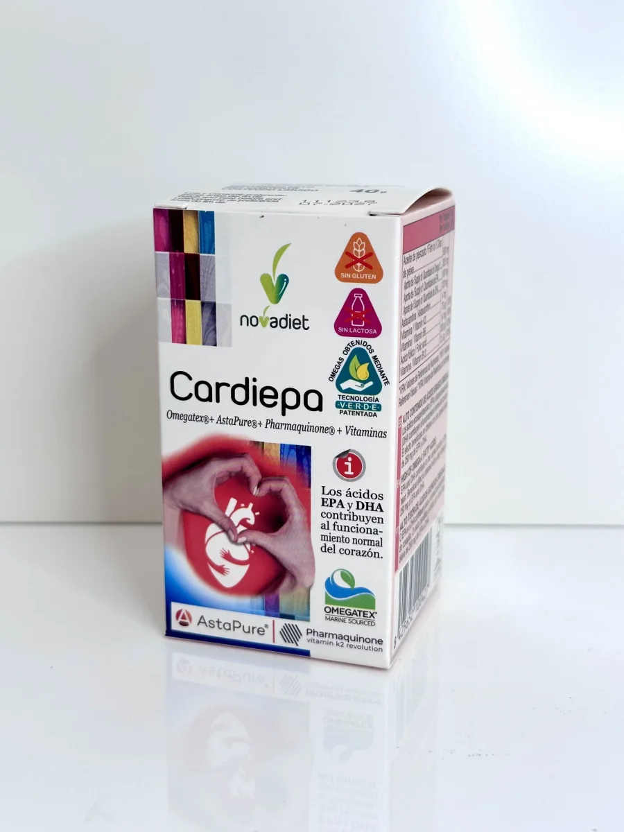 Cardiepa de Nova Diet es un complemento alimenticio a base de Omegatex®, AstaPure®, Pharmaquinone® y Vitaminas que en conjunto ofrecen una protección cardiovascular total.