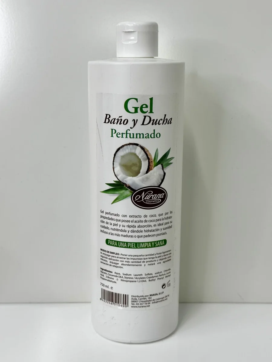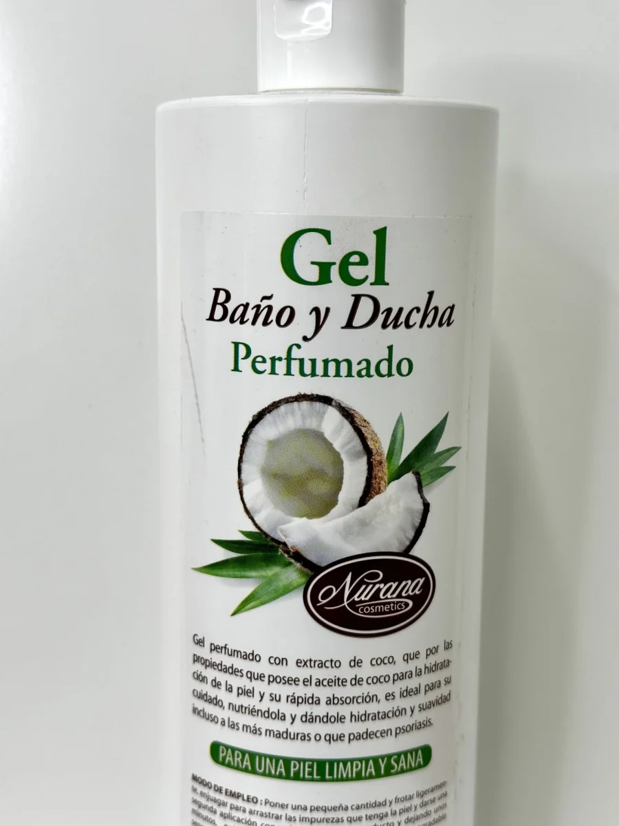 Gel de Baño y Ducha perfumado con extracto de coco, que por las propiedades que posee el aceite de coco para la hidratación de la piel y su rápida absorción, es ideal para su cuidado, nutriéndola y dándole hidratración y suavidad incluso a las pieles más maduras o con problemas.
