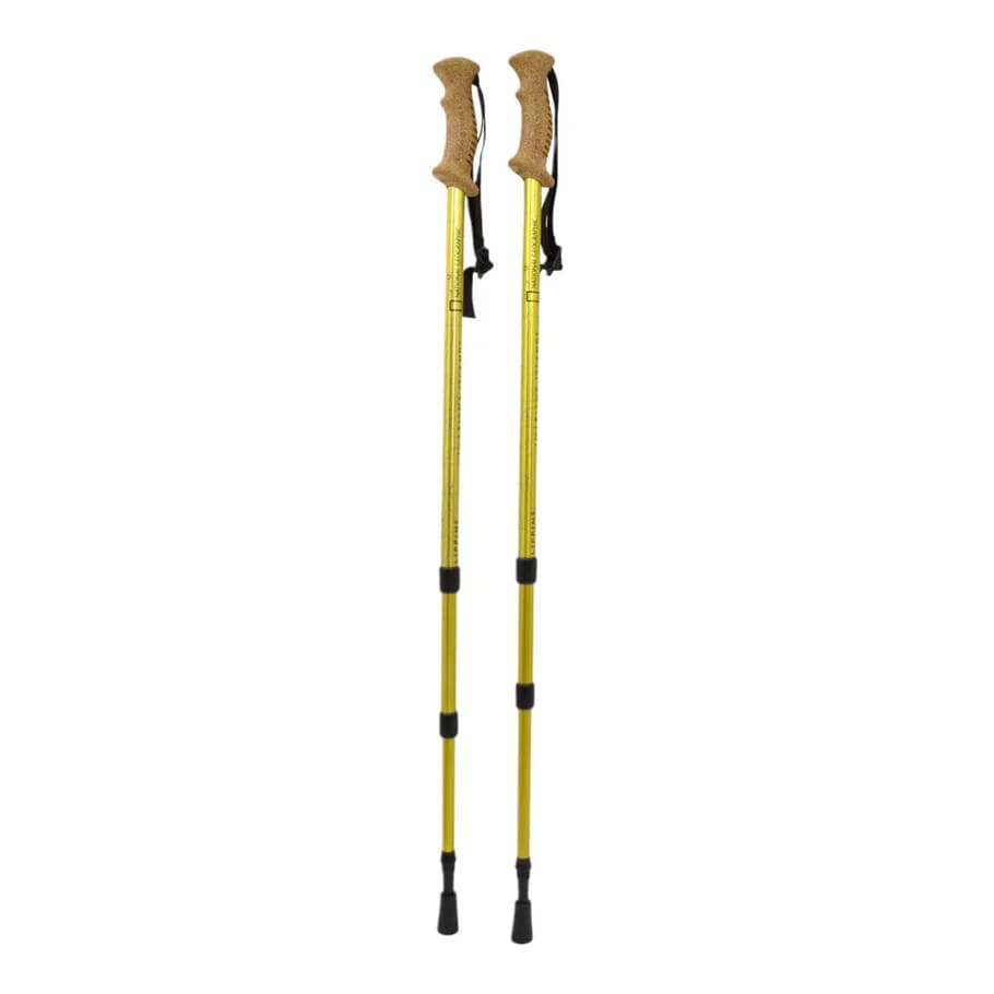 Con su distintivo diseño amarillo con mapa del mundo y el sello de National Geographic, estos bastones son el reflejo de quienes aman descubrir nuevos horizontes.